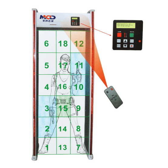 MCD-600型是實用性非常強的一款金屬探測門,5.0英寸大屏幕液晶顯示面板和人性化的操作系統(tǒng),中英文雙語菜單設計,附帶遙控器操作功能,使用方便。采用進口防火板為門板材料,有防火、防水、防震等優(yōu)點。門兩側柱子上安裝有與人體等高的高亮度LED報警指示燈。門中建立有電磁場,當人體攜帶金屬物品通過時能產生報警的裝置,能準確探測到人身上或手體包箱中攜帶的金屬物品或含有金屬的物品,如各種管制刀具、武器、金屬制品、電子產品及其他含有金屬的物品等,用來進行安全檢查、防偷竊檢查的一種有效工具,主要應用于政府機關、公安機關、檢察院、法院、監(jiān)獄、看守所、海關、機場、車站、體育場館、會展場館、娛樂場所、大型集會等場所以及五金、電子、首飾、軍工、造幣等工廠或企業(yè)。